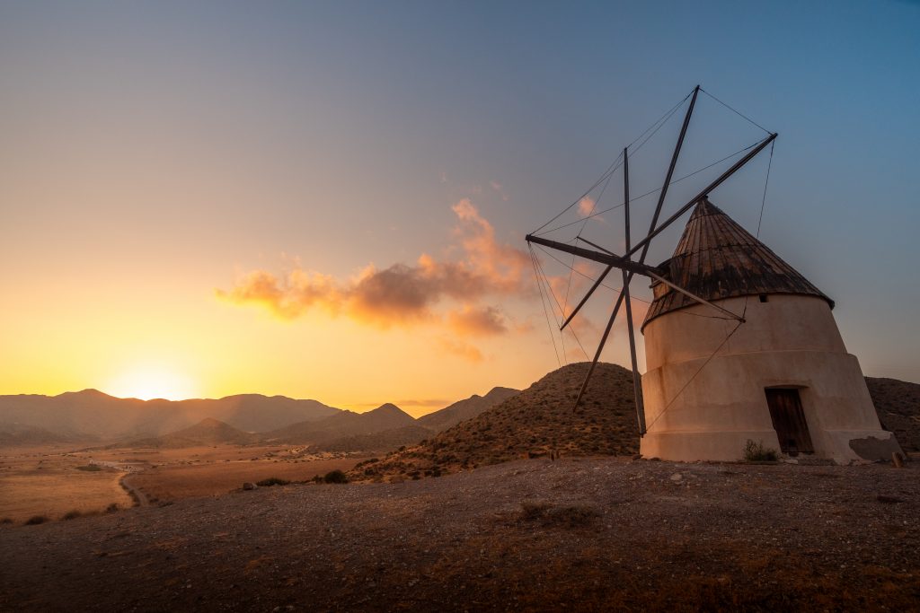 Esta jornada comienza con la serenidad del amanecer en el pueblo de Las Negras. Desde allí nos dirigimos atravesando ramblas y zonas de acantilados hasta el célebre Playazo de Rodalquilar, donde podremos ver vistas panorámicas del mar, castillos o dunas fosilizadas. Después accederemos a una de las partes más exclusivas del parque natural, la torre de los lobos, un lugar único donde poder soñar a vista de pájaro a 489 metros sobre el nivel del mar. Para finalizar la jornada realizaremos el descenso atravesando el hermoso valle de la caldera volcánica de Rodalquilar hasta llegar al centro del pueblo minero del parque natural.